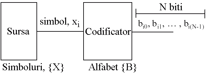 reprezentate printr-un cuvant de cod din N simboluri alese dintr-un alfabet B