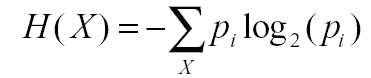 I(xi) = -log2{p(xi)*} = log2{1/p(xi)}