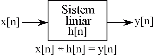 Un semnal de intrare, x[n], ce intra intr-un sistem liniar al carui raspuns la functia delta este h[n] produce la iesire un semnal y[n] care este rezultatul aplicarii operatie de convolutie asupra functiilor x[n] si h[n]