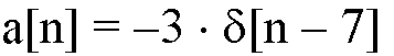 Orice impuls poate fi exprimat in functie de functia delta. Spre exemplu, un impuls a[n] care ia valoarea -3 pentru esantionul 7 se poate scrie