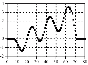 Programul e mai sus permite convolutarea unui semnal de intrare format din 81 de esantioane cu o functie de raspuns de 31 puncte si produce la iesire un semnal format din 111 puncte (adica 81+31-1).