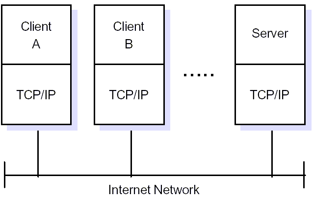 Exista aplicatii alcatuite atat dintr-o parte client cat si dintr-o parte server, care pot rula pe acelasi sistem sau pe sisteme diferite. Utilizatorii invoca partea client a aplicatiei, care efectueaza o cerere referitoare la un serviciu pe care o trimite partii de server a aplicatiei folosind protocolul TCP/IP pe post de vehicul de transport.